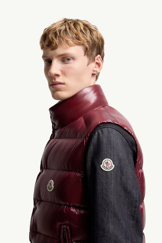 MONCLER TIBB DOWN GILET - BURGUNDY || DESIGNER JACKET